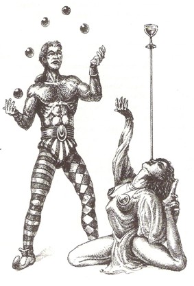 Eine scharfe Zunge ist vielen Gauklern zu eigen und so neigen sie dazu, durch kleine Sticheleien für Stimmung sorgen zu wollen. Bei fast allen Gauklern ist der Aberglaube ein besonders ausgeprägter Charakterzug, was man von seiner Zuverlässigkeit nicht eben behaupten kann. Es kann ihm leicht geschehen, daß er sein ganzes Geld beim Hahnenkampf verwettet, während seine Freunde ein paar Straßen weiter ungeduldig auf ihn warten. dennoch ist der Gaukler in den meisten Heldengruppen gerne gesehen, da er ohne zu zögern gewagte Risiken auf sich nimmt und durch seine natürliche Fröhlichkeit und verblüffende Gauklertricks auch die düsterste Stimmung sofort aufhellen kann.
